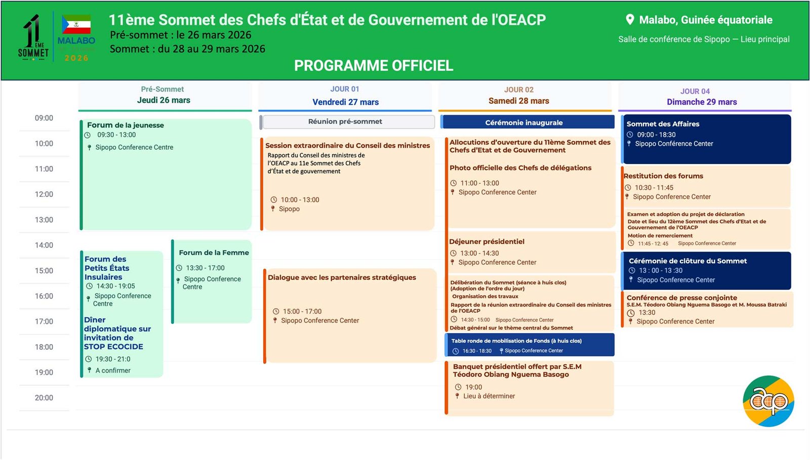 Informations officielles, communiqués et mises à jour relatives au 11ᵉ Sommet de l’OEACP à Malabo.